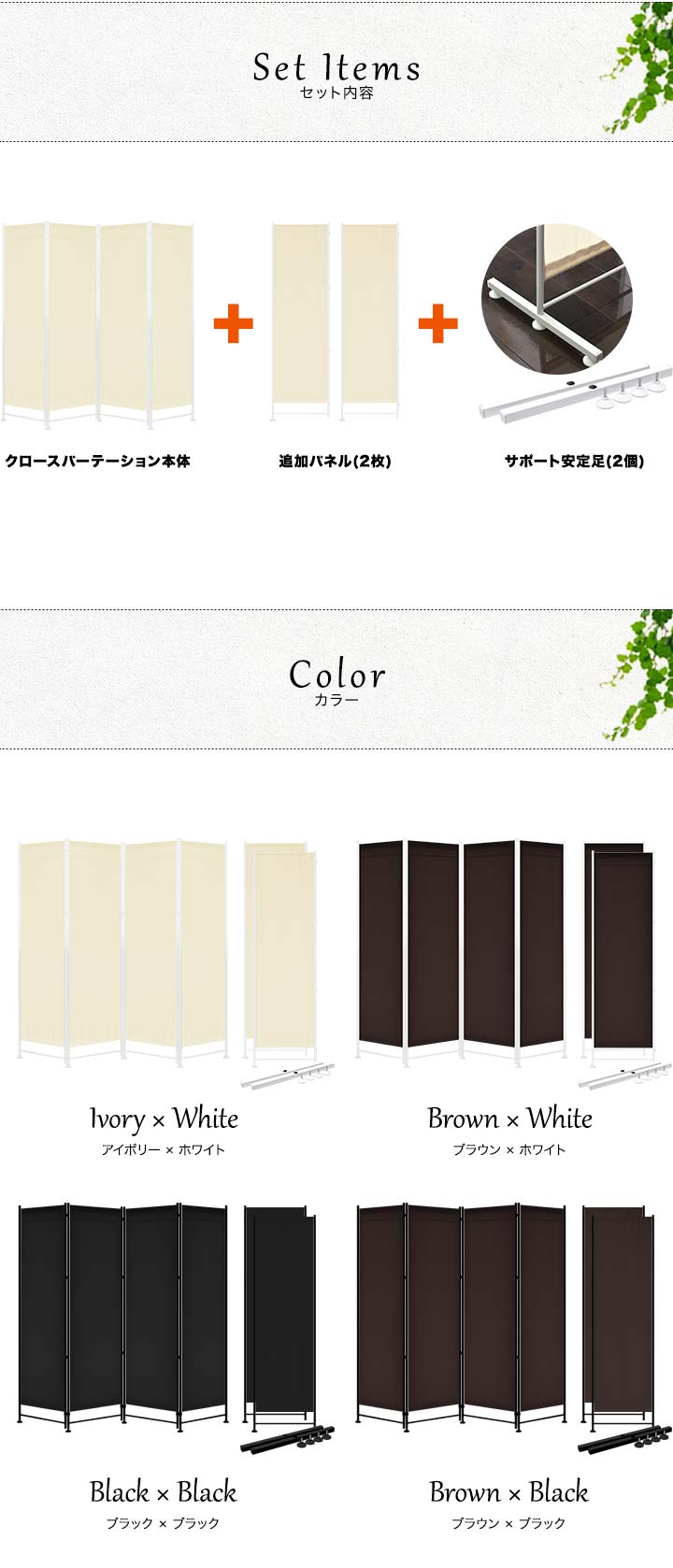 [こんな商品をお探しの方に] パーテーション 仕切り ついたて パネルパーテーション スクリーンパーテーション パーテション パネルパーテション クロスパーテーション クロースパーテーション 布パーテーション ファブリックパーテーション スクリーンパーテション パーティション パネルパーティション スクリーンパーティション パーティーション パネルパーティーション スクリーンパーティーション パーテーションパネル 仕切り 間仕切 間仕切り 衝立 つい立て ついたて スクリーン オフィス ミーティングルーム 会議室 事務所 職場 会社 窓口 パネル オフィス家具 インテリア 目隠し プライバシー プライバシー保護 自立 自立式 脚付 脚 移動式 調光 遮光 日よけ 日除け スリム 省スペース エアコン 風よけ 風除け 移動 子供部屋 子ども部屋 勉強部屋 ダイニング カフェ キッチン サロン リビング キッズルーム 部屋 台所 和室 室内 商談室 給湯室 窓 壁 模様替え シンプル 洋風 ナチュラル モダン 和モダン 男前 西海岸 西海岸風 和風 レトロ シック アジアンテイスト アジアン 北欧 おしゃれ オシャレ お洒落 インテリア・寝具・収納 オフィス家具 パーテーション商品詳細 セット内容: ・クロースパーテーション本体×1 ・追加パネル×2 ・サポート安定足×2 カラー: ・アイボリー×ホワイト ・ブラウン×ホワイト ・ブラック×ブラック ・ブラウン×ブラック サイズ: クロースパーテーション本体:(約)幅202cm×高さ180cm(4枚全開にした場合) ※1枚辺りの幅50cm 追加パネル:(約)幅50cm×高さ180cm サポート安定足:(約)4.7cm×45cm×4.5cm 重量: クロースパーテーション本体:(約)6.6kg 追加パネル:(約)1.6kg サポート安定足:(約)0.5kg 材質: クロースパーテーション本体:スチール / ポリエステル100% 追加パネル:スチール / ポリエステル100% サポート安定足:スチール 特記事項: ※こちらの商品はお客様組み立てとなります。