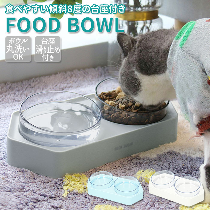 犬 餌入れ おしゃれ 通販 猫 ねこ いぬ 食器台 フードボウル エサ入れ 傾斜 傾き 滑り止め すべりどめ 耐熱性 耐久性 食べやすい プラスチック ホワイト グレー 安定 ペット スタンド 衛生的 猫用 犬用 子猫 子犬